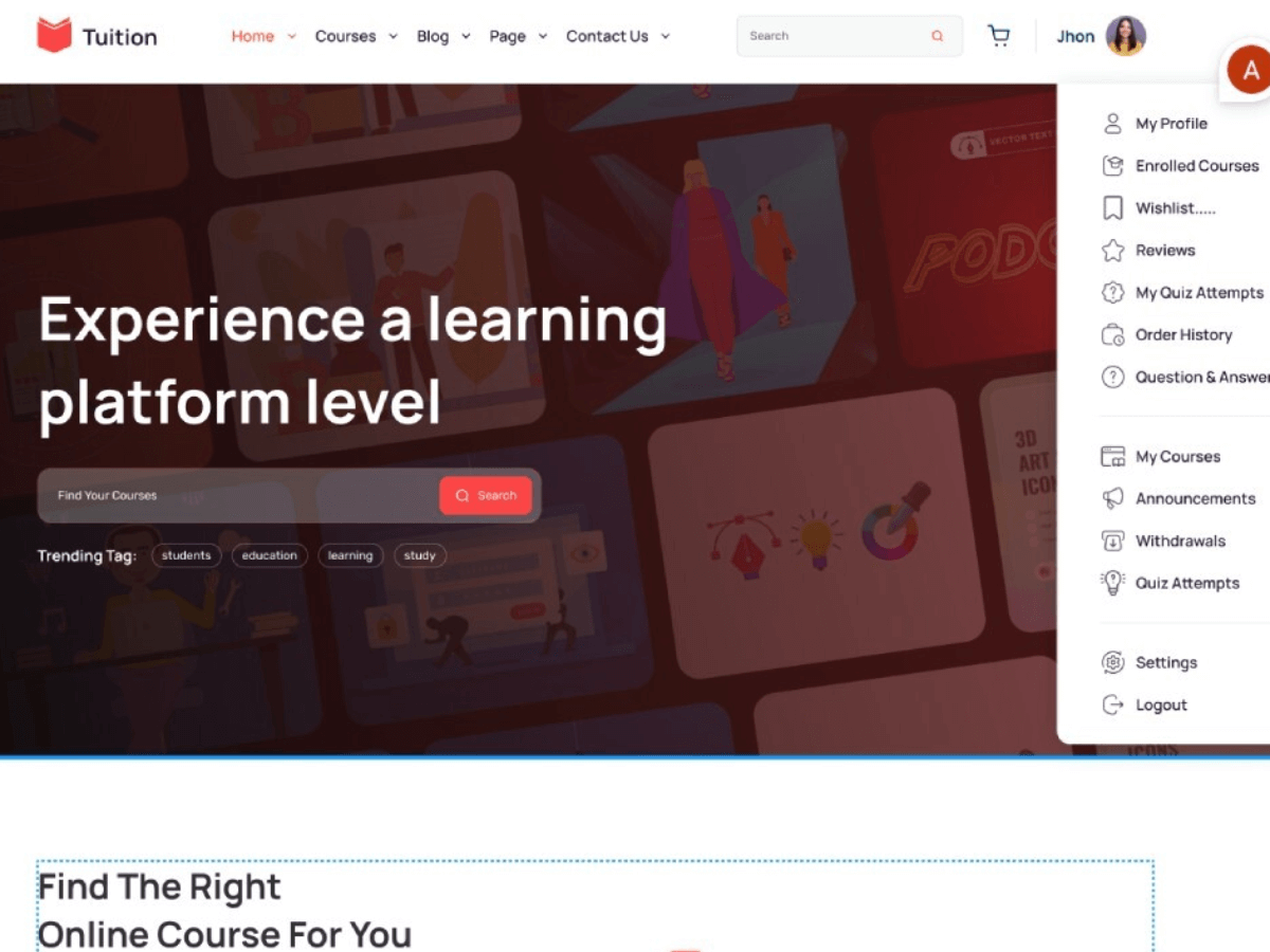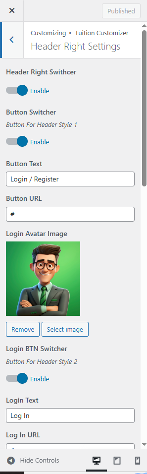 Customise → Tuition Customizer → Theme Header Right Setting