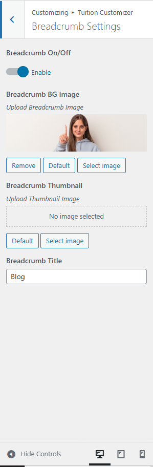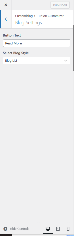 Customise → Tuition Customizer → Theme Blog Settings