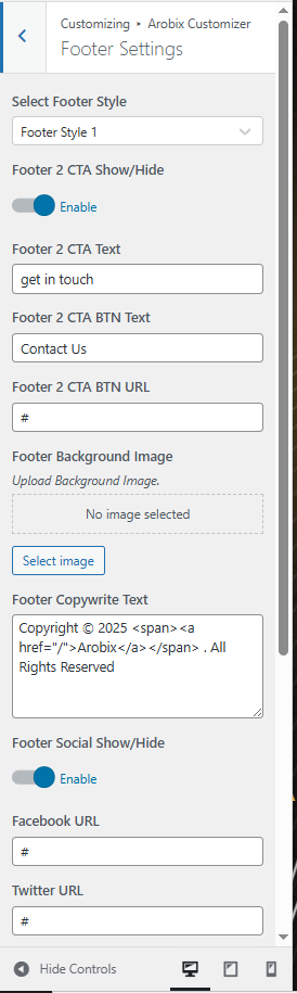On each page you'll see a Template Settings metabox, located below the page content editor. This metabox includes various options to control the header style , footer visibility and Logo Setting on each page.