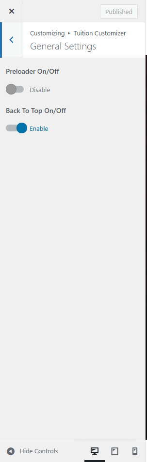 Customise → Tuition Customizer → General Setting