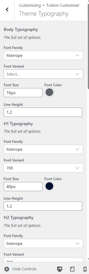 Customise → Tuition Customizer → Theme Typography