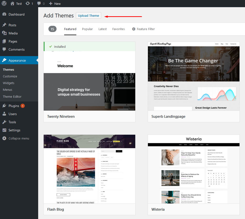 locate the installable WordPress file to upload when you install the theme.